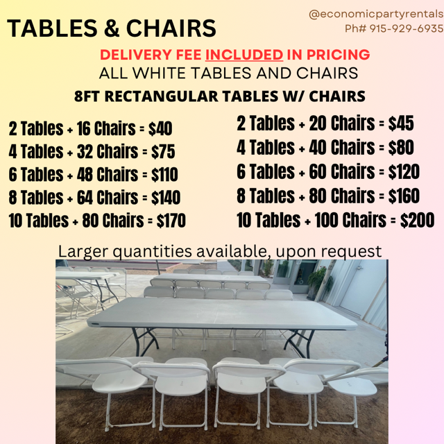 PACKAGES: JUMPING BALLOONS, TENT, TABLES & CHAIRS